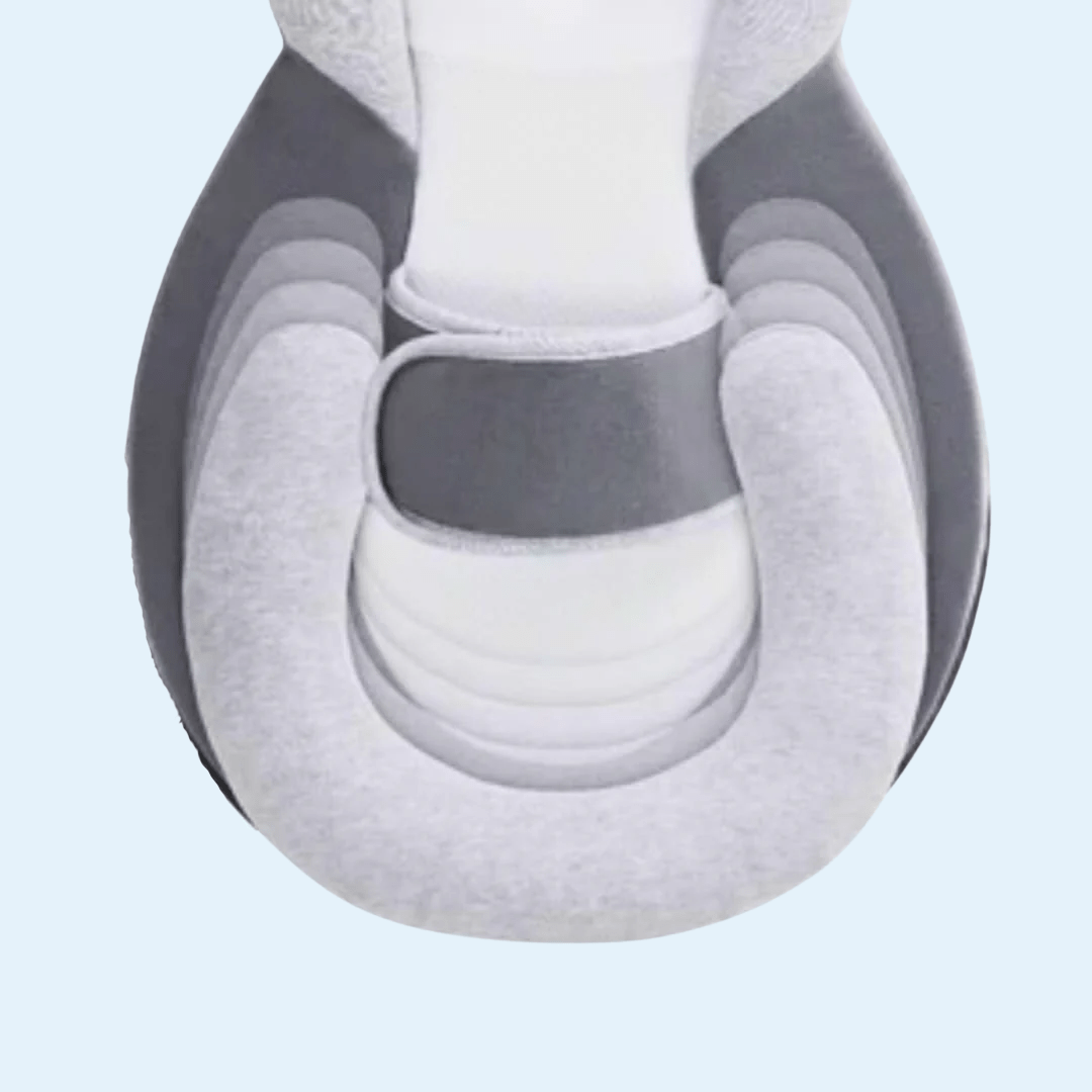 מבנה קעור ועדין במרכז הכרית מפזר את הלחץ באופן שווה על גולגולת התינוק, ועוזר למנוע תסמונת הראש השטוח – מבלי לוותר על נוחות.